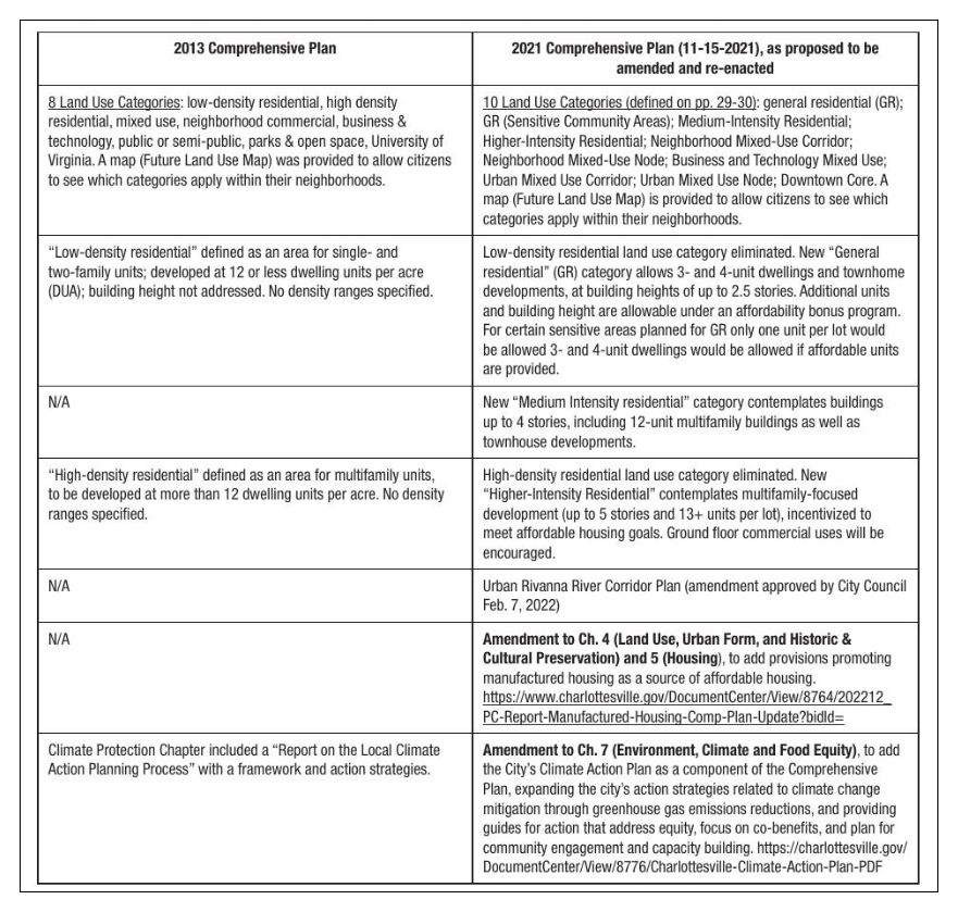 The plaintiffs in Doe v. City (C’ville Cir. Ct. Case No. CL21-610) have challenged the validity of the Comp Plan, claiming that the previous public hearing notices were insufficient to put people on notice of what changes [particularly in relationship to residential density and affordable housing] were part of the “update”. Since the City has amendments it wishes to present for consideration, it made sense to re-notice the public hearing for the previous updates as well.