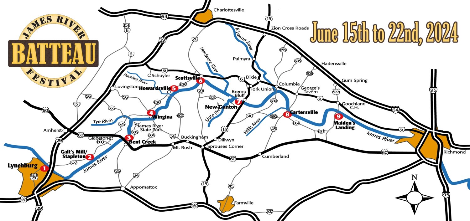 This is the 39th running of the James River Batteau Festival which is administered by the Virginia Canals and Navigations Society. The trip also makes stops at Bent Creek, Wingina, Howardsville, New Canton, Cartersville, and Malden’s Landing. Learn more about the festival on the society’s webpage.