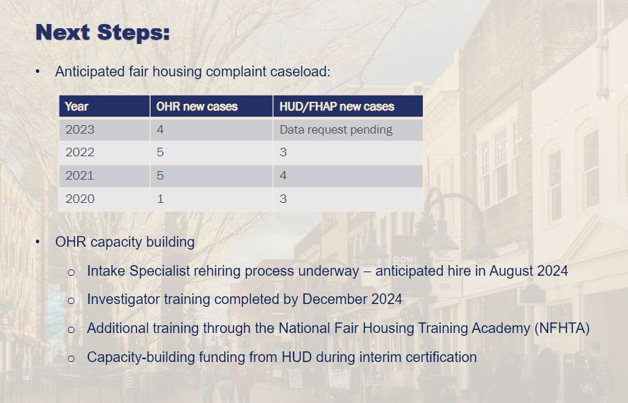 Council heard the first reading of the amendments on July 15. To qualify for the workshare, a submission must be made to the U.S. Housing and Urban Development by August 15. The department will make its decision on whether to proceed around October 1.