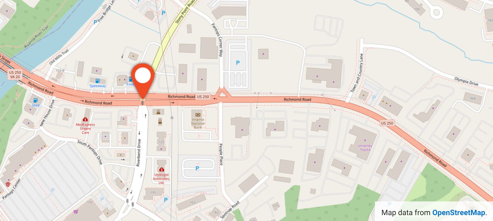 In this case, VDOT is planning to rebuild the existing intersection of U.S. 250, Virginia Route 20, and Riverbend Drive. The latter is the eastern border of the Pantops Shopping Center and leads to South Pantops Boulevard which serves as a parallel road to U.S. 250.