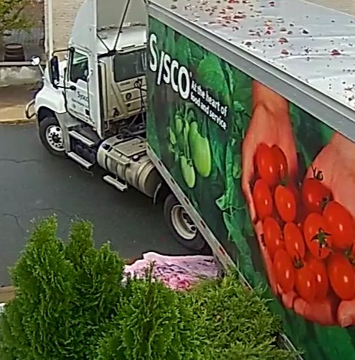 Video footage captured by an adjacent property owner’s camera shows the driver attempting to make the turn. At seven seconds in, the driver moves left onto Dice Street and the footage shows vegetation brushed against as it tries to go through a very sharp corner.