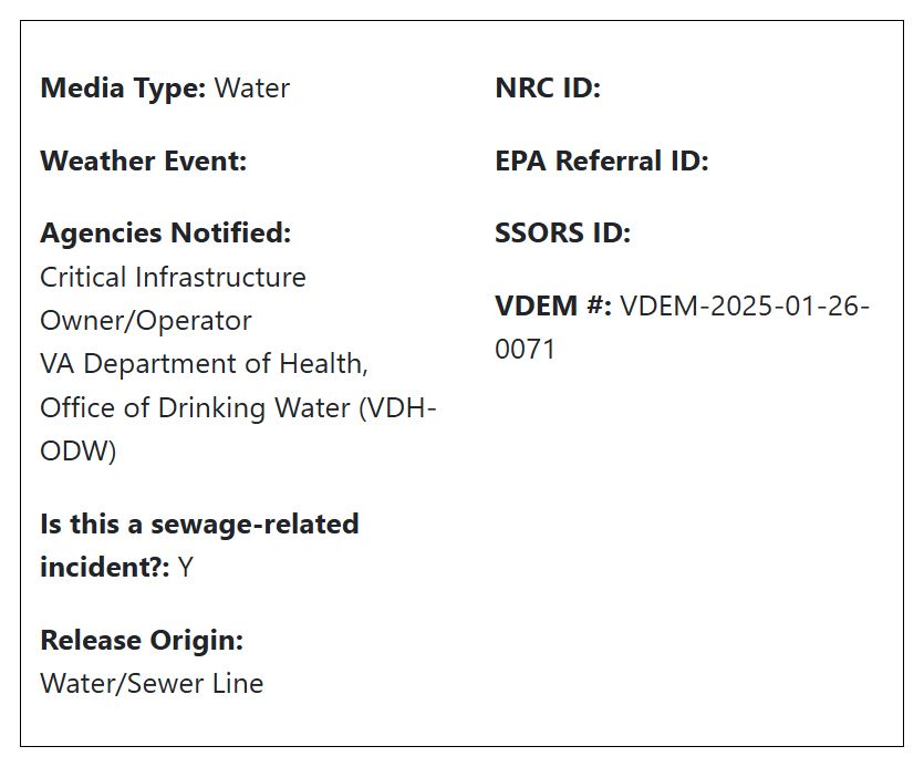The Virginia Department of Environmental Quality is reviewing a recent incident where sewage flowed into a local waterway.