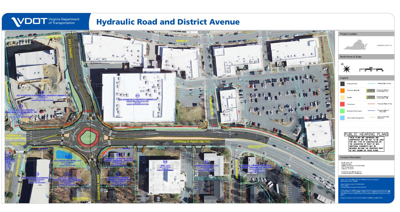 “The projects include a roundabout at Hydraulic Road and District Avenue, improvements at the U.S. 29 Bypass and Fontaine Avenue interchange, and streetscape improvements along Fontaine Avenue,” reads a section of VDOT’s website.