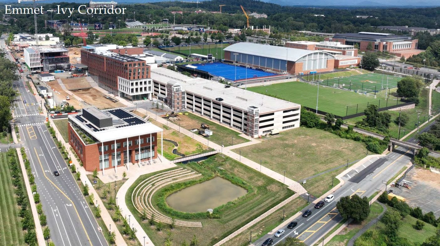 After years of property acquisition by the University of Virginia Foundation and planning from the UVA Office of the Architect, there’s one new completed building for the School of Data Science and plenty more coming out of the ground at what’s known as the Emmet Ivy corridor. The Board of Visitors adopted a master plan in 2016.