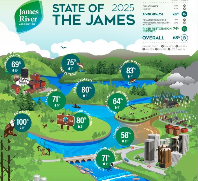 Top photo: This is only half of the full illustration that accompanies the 2025 State of the James Report. Make sure you download the report to see the other half. You can do so here. (James River Association)